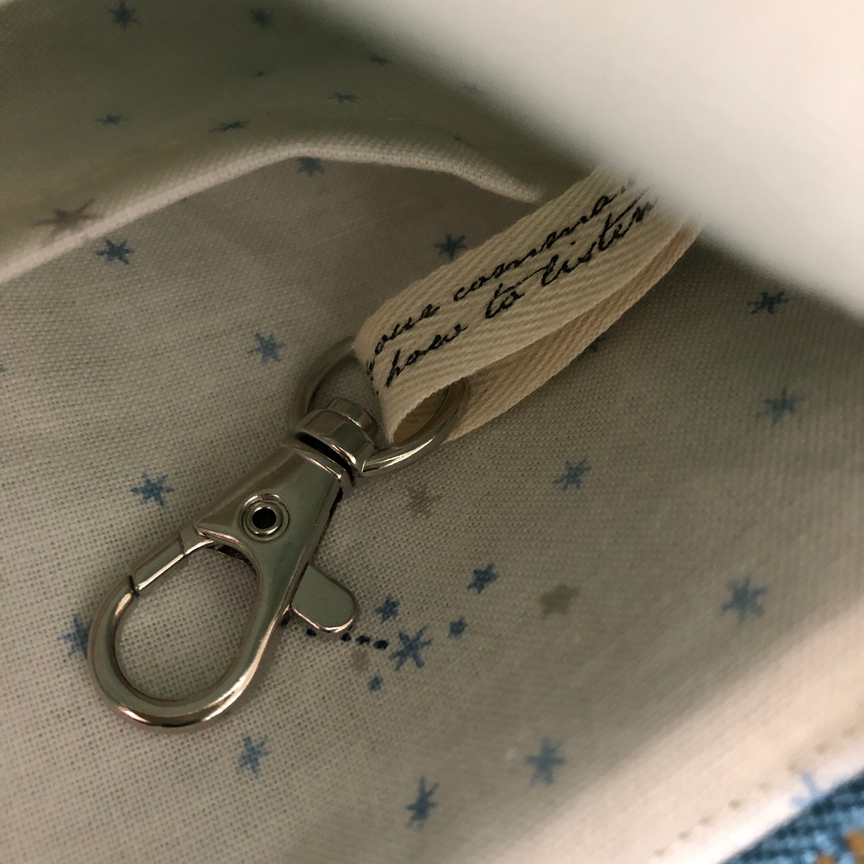 ファスナー部分には可愛らしい小鳥さんチャームをお付けしています。使うたびに心が和むアイテムです✨